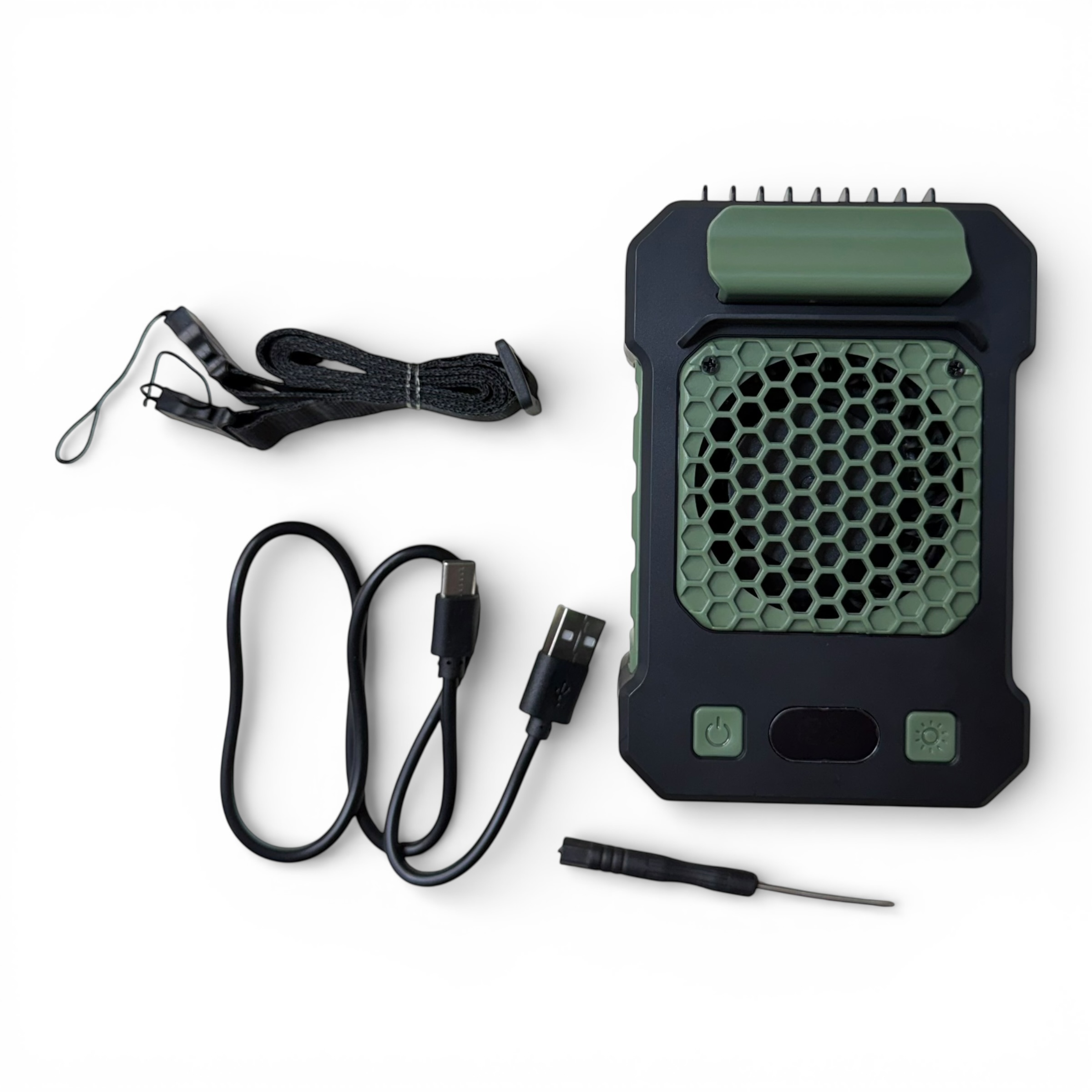 Uso Táctico: Enganchá el clip principal en el cinturón y el clip pequeño en el borde de la remera para crear un túnel de aire frío ascendente.