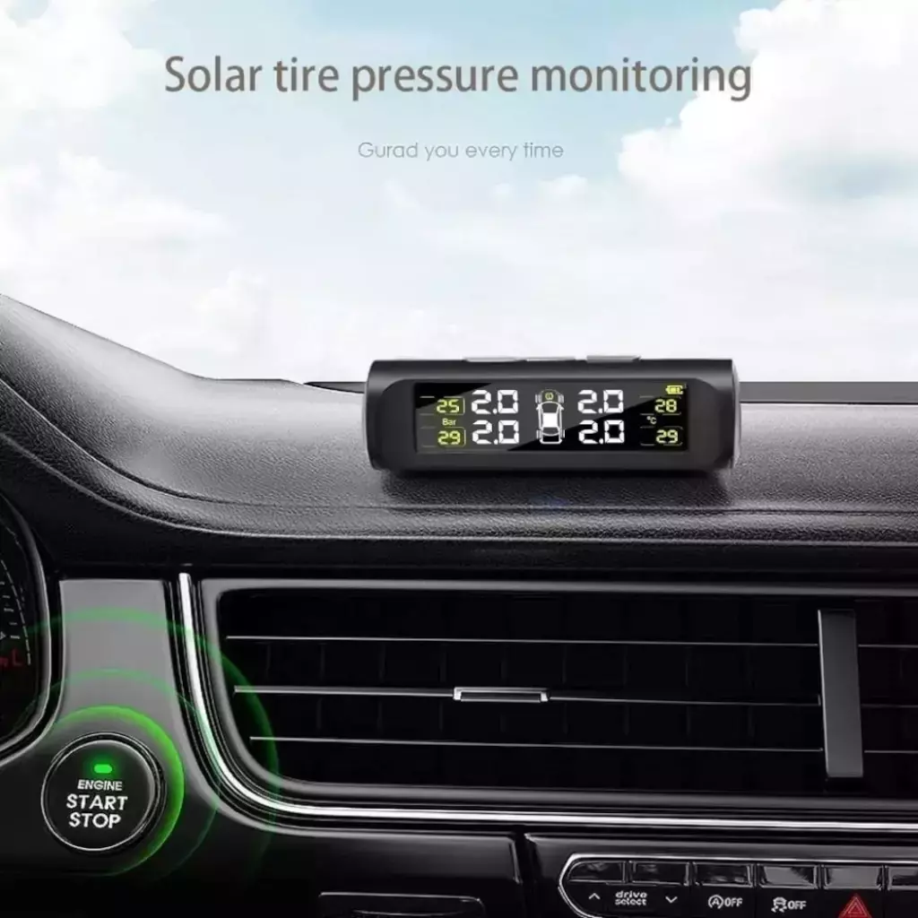 Sistema autónomo que carga con energía solar y vigila en tiempo real la presión y la temperatura de cada rueda, con alarmas programables para mayor seguridad.